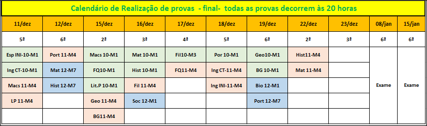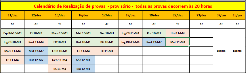 Os resultados das provas podem ser consultadas na disciplina onde foram feitas as provas ( normalmente Avaliação 3º período)