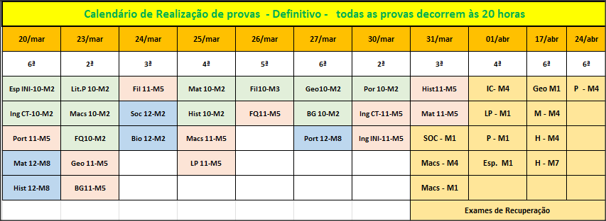 Os resultados das provas podem ser consultadas na disciplina onde foram feitas as provas ( normalmente Avaliação 3º período)