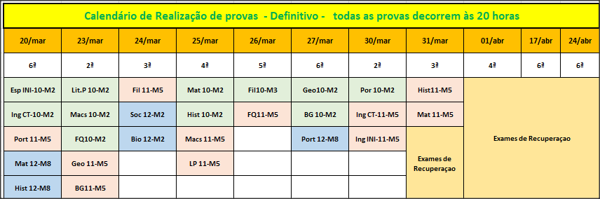 Os resultados das provas podem ser consultadas na disciplina onde foram feitas as provas ( normalmente Avaliação 3º período)